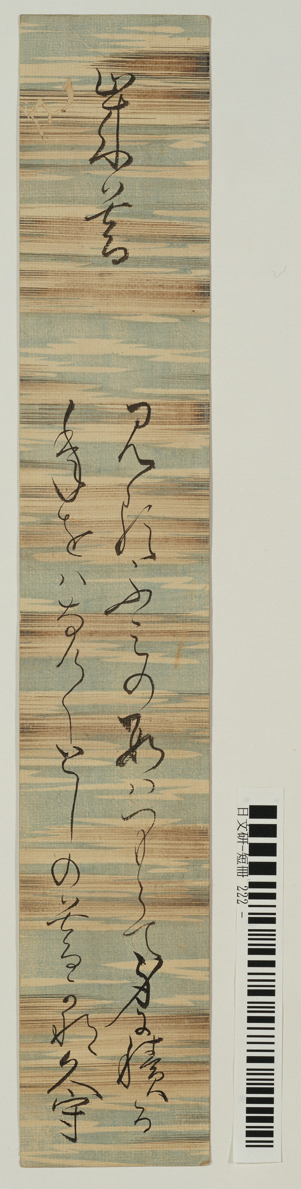 初、三、五句における墨継ぎ:あり,上下句の頭に漢字を揃えない:なし,二行の頭を同じ高さに揃える:あり