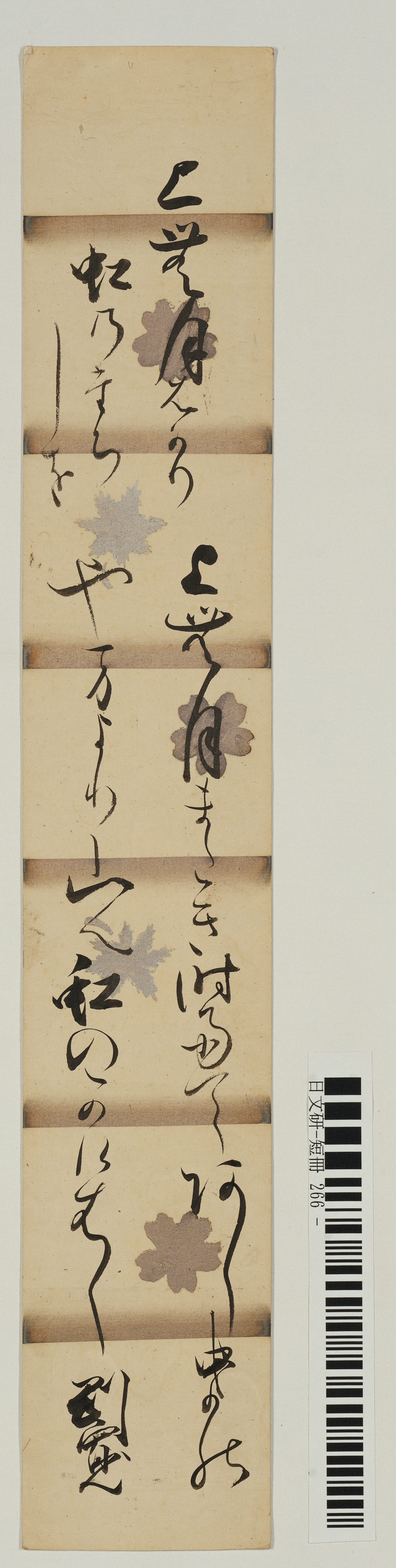 初、三、五句における墨継ぎ:あり,上下句の頭に漢字を揃えない:あり,二行の頭を同じ高さに揃える:あり,女性は表に署名せず、裏の右下隅に署名する:あり