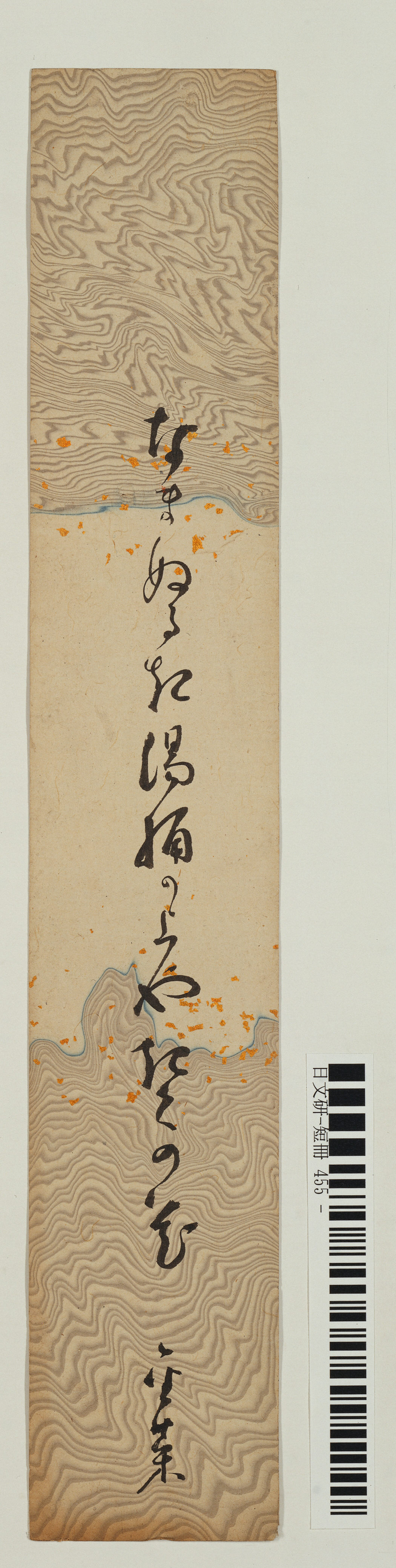書き模様:墨流し,青で縁とり,金銀箔砂子模様