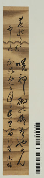 初、三、五句における墨継ぎ:あり,上下句の頭に漢字を揃えない:あり,二行の頭を同じ高さに揃える:あり