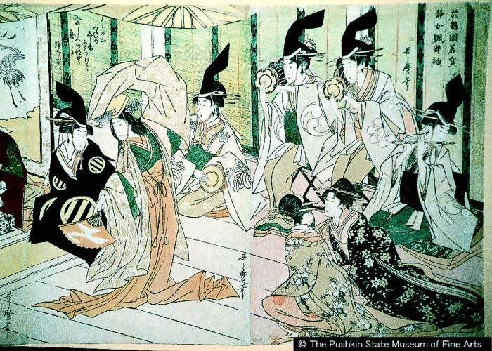 於鶴岡若宮静女飄舞袖/ [Shizuka Dancing at Wakamiya, Tsurugaoka] |