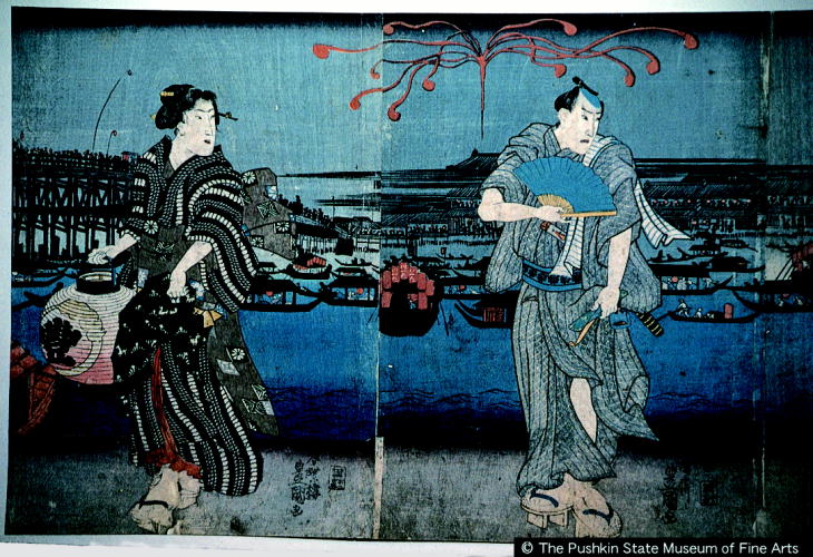 両国夕凉之図/ Enjoying the Evening Cool at Ryoogoku |