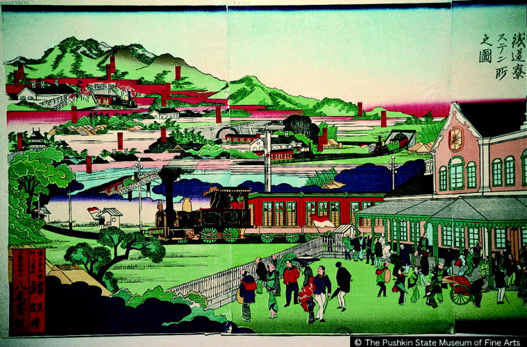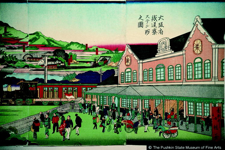 大阪府鉄道寮ステン所之図/ Osaka Railroad Station |