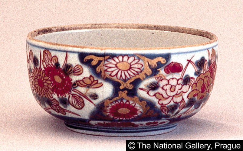 色絵菊牡丹柘榴文蓋付鉢(蓋欠)/ Bowl with design of chrysanthemums, peonies, and pomegranates (missing lid) |