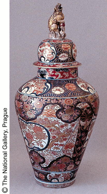 色絵花鳥文蓋付壷/ Covered jar with design of birds and flowers |