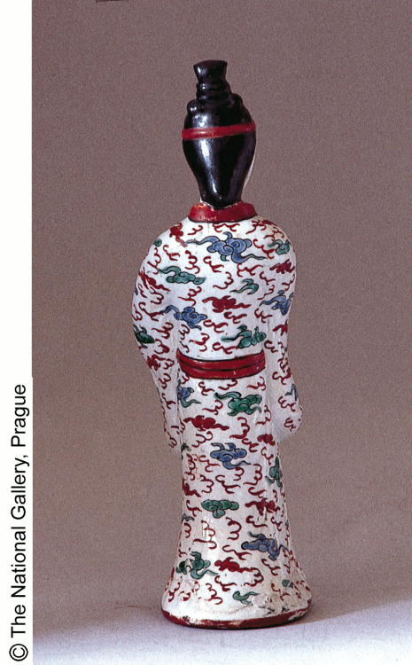 色絵雲文壷持婦人立像/ Standing female figurine holding a jar |