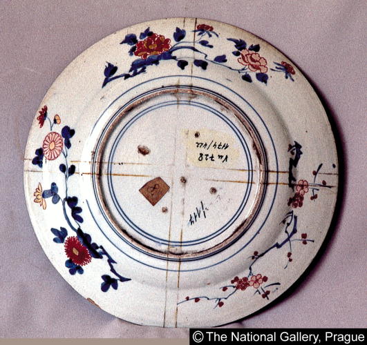 作品名 色絵花盆文皿/ Plate with design of floral arrangement