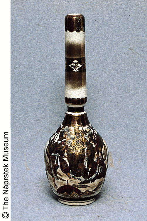 色絵陶器武者絵文瓶/ Bottle with scenes of samurai |