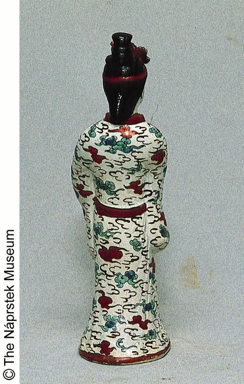 色絵飛雲文壷持婦人立像/ Standing woman holding a jar |
