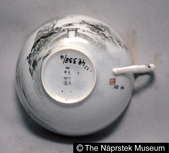 色絵山水文手付紅茶カップ皿/ Handled cup and saucer with landscape scenes |