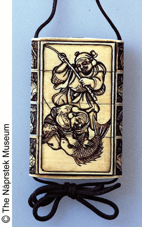 恵比寿大黒福禄寿牙彫印篭/ Inroo |