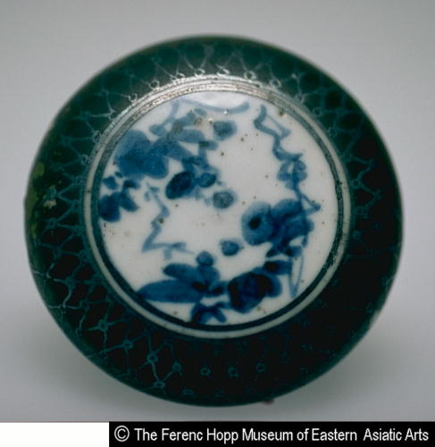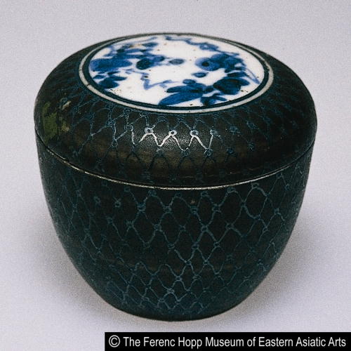 染付銀彩網目文蓋物(棗)/ Tea caddy with fishnet pattern |