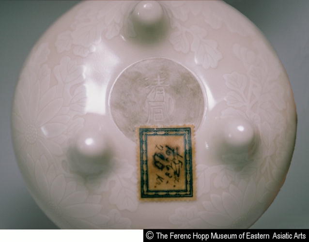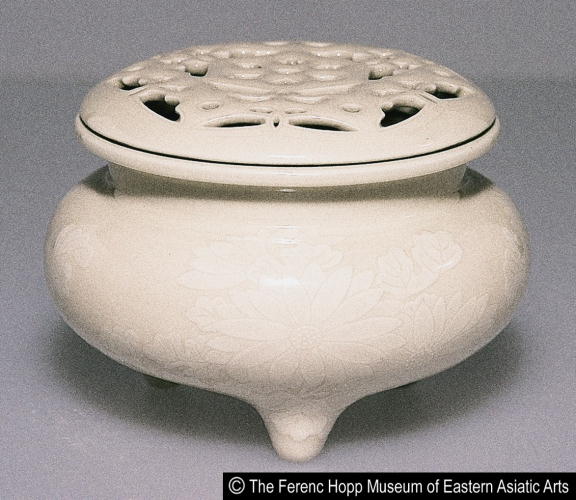 白磁菊文蓋付三足香炉/ Tripod incense burner with design of chrysanthemums |