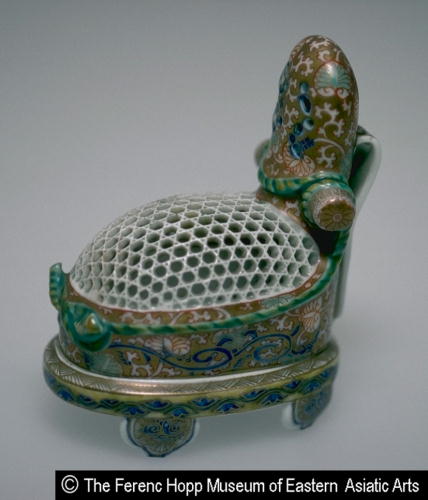 色絵冠帽形四足香炉/ Incense burner in the shape of a courtier's hat |