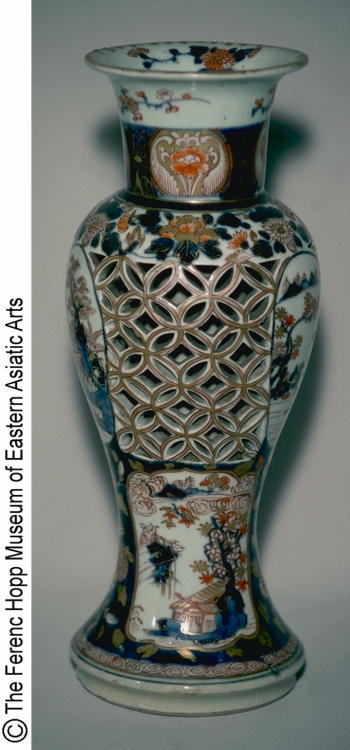 作品名 色絵七宝透山水文瓶/ Bottle with design of interlinked circles and landscape