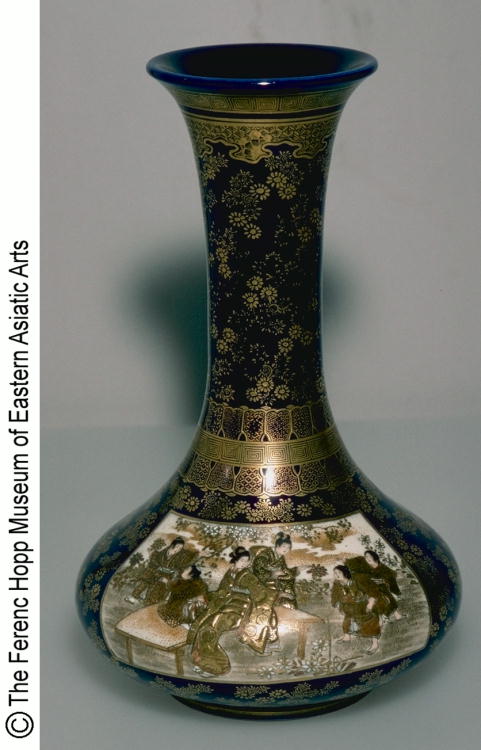 瑠璃色絵武者絵花瓶/ Flower vase with scenes of samurai |