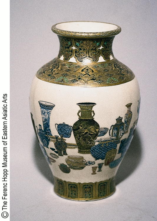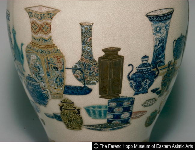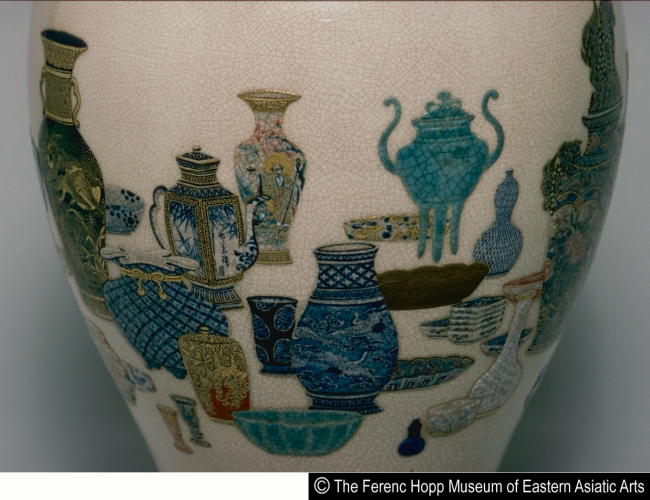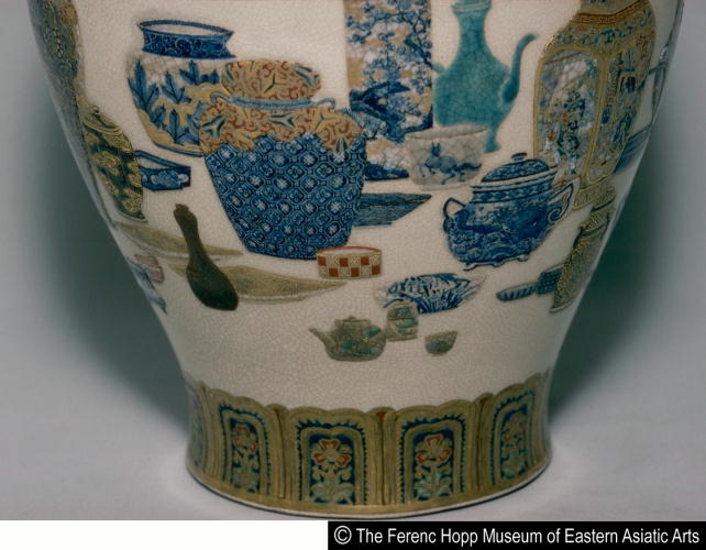 作品名 色絵陶磁器尽文花瓶/ Flower vase with design of assorted ceramic vessels