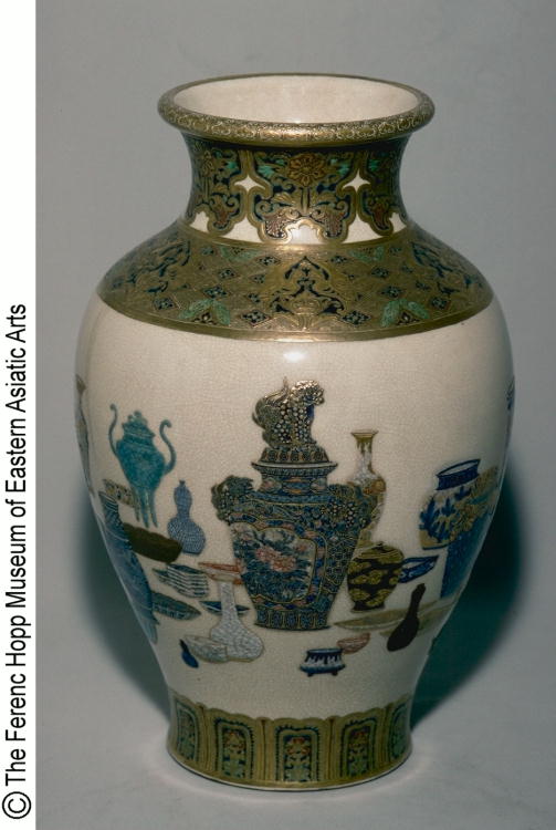 色絵陶磁器尽文花瓶/ Flower vase with design of assorted ceramic vessels |