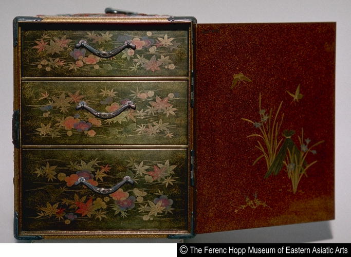 太田道潅図螺鈿蒔絵提箪笥/ Chest (design of Oota Dookan) |