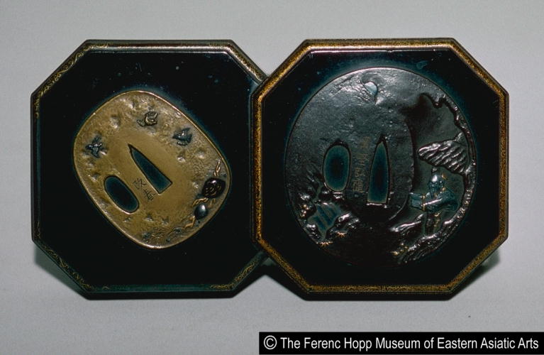 鍔文人道具嵌装茶箱/ Tea utensil box with design of sword guards and writing utensils |
