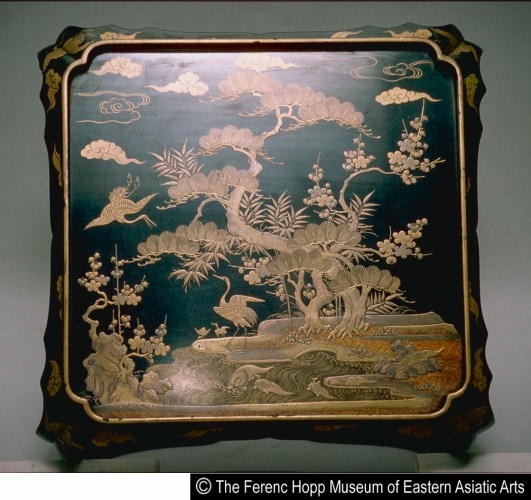 作品名 松竹梅鶴亀蒔絵懸盤/ Tray table with design of pine, bamboo, plum, crane, and tortoise