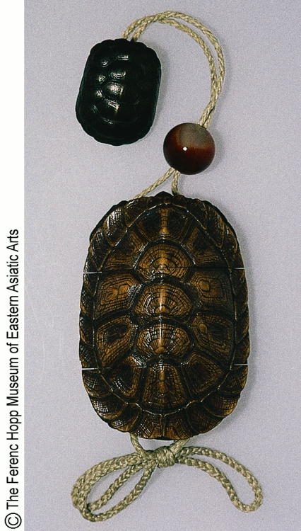 亀木彫印篭/ Inroo with design of turtle |