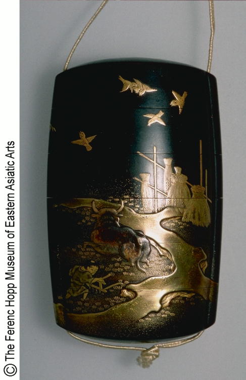 作品名 餅搗耕作図蒔絵印篭/ Inroo with scenes of making mochi and farming