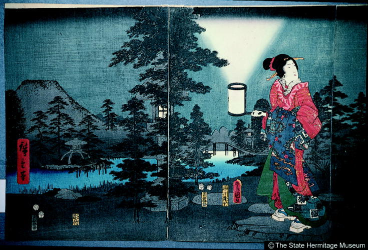 風流源氏夜の庭/ Night Garden Scene from the Tale of Genji |