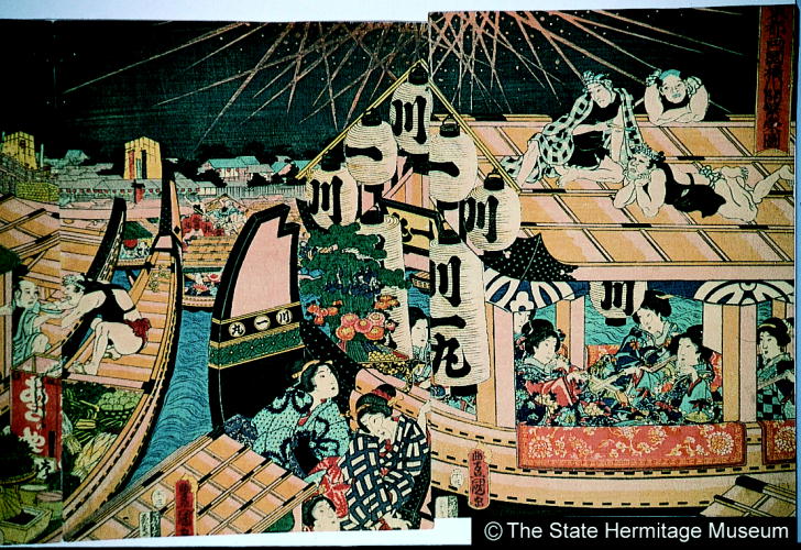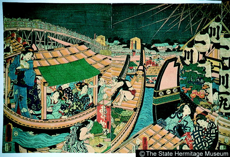 東都両国橋川開繁栄図/ Festival Activities at the Ryoogoku Bridge in Edo |