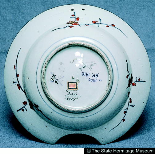 伊万里色絵牡丹菊文髭皿/ Barber's bowl with design of peonies and chrysanthemums |