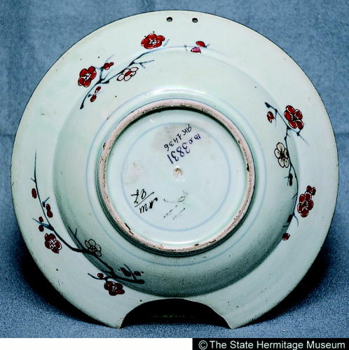 伊万里色絵盛花文髭皿/ Barber's bowl with design of floral arrangement |
