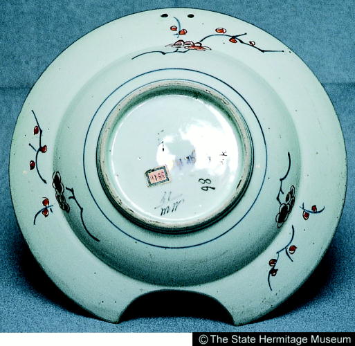 伊万里色絵牡丹文髭皿/ Barber's bowl with design of peonies |