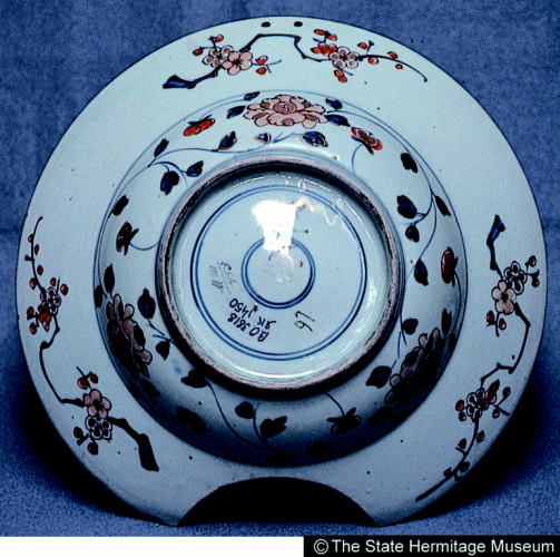 伊万里色絵菊文髭皿/ Barber's bowl with design of chrysanthemums |