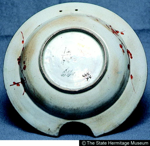 伊万里色絵鳳凰花卉文髭皿/ Barber's bowl with design of phoenix and flowers |
