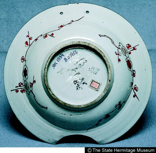 伊万里色絵柘榴文髭皿/ Barber's bowl with pomegranate design |