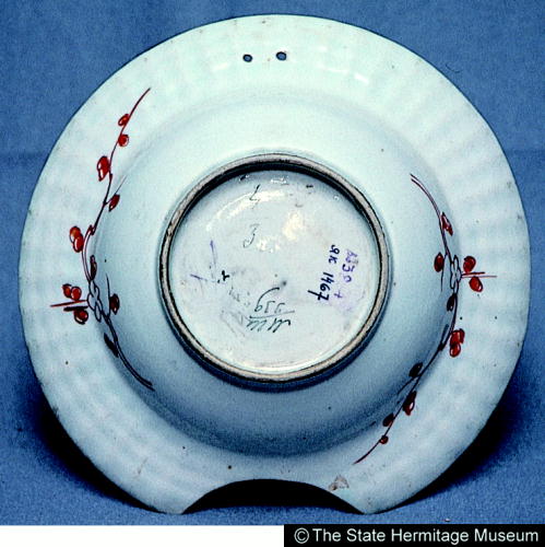 伊万里色絵牡丹文髭皿/ Barber's bowl with design of peonies |