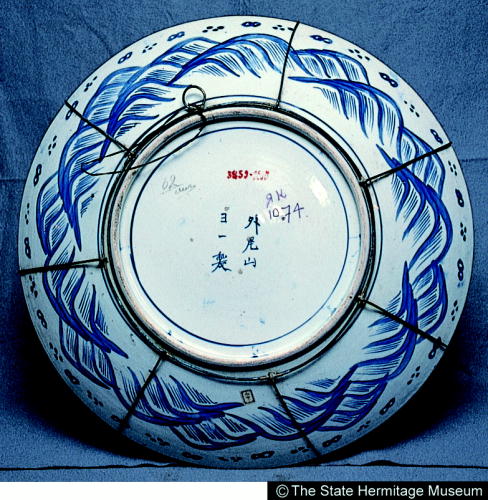 有田染付鶴丸文大皿/ Large plate with design of cranes in medallions |