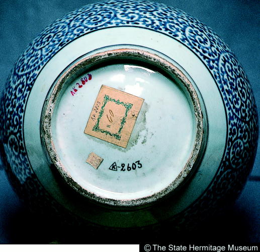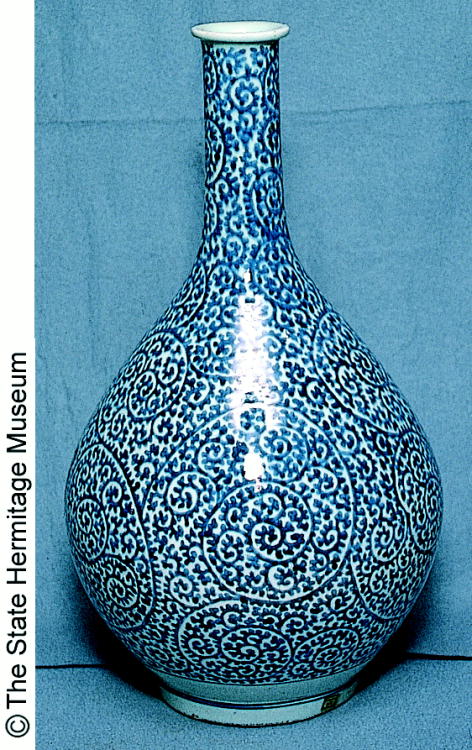 伊万里染付蛸唐草文瓶/ Bottle with octopus arabesque patterns |