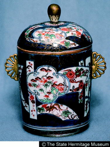 伊万里色絵松竹梅文蓋付鉢/ Covered container with design of pine, bamboo, and plum |