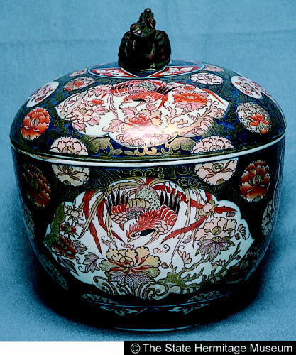 伊万里色絵鳳凰透彫有蓋壷/ Covered jar with phoenix and openwork design |