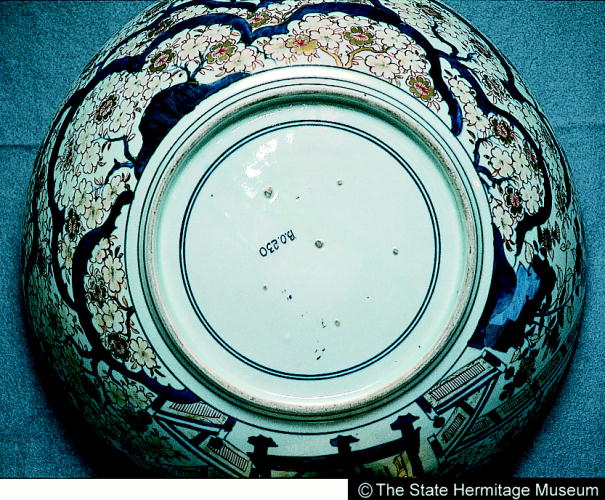 伊万里色絵楼閣桜文大鉢/ Large bowl with design of cherry blossoms and architecture |