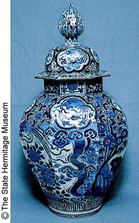 伊万里染付唐獅子文八角有蓋壷/ Octagonal covered jar with design of Chinese lions |