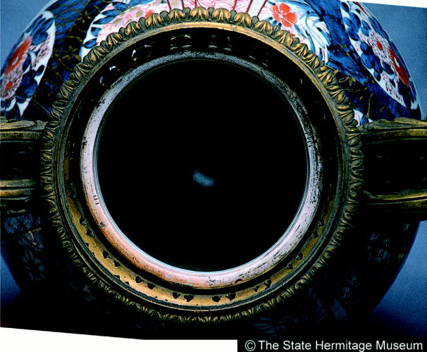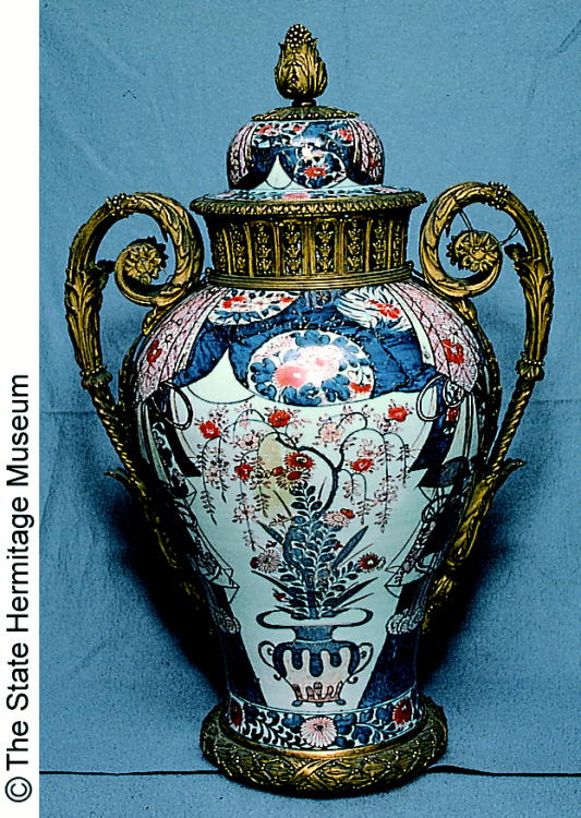 伊万里色絵盛花文金具付有蓋壷/ Covered jar with metal fixures and design of floral arrangements |