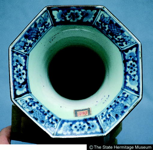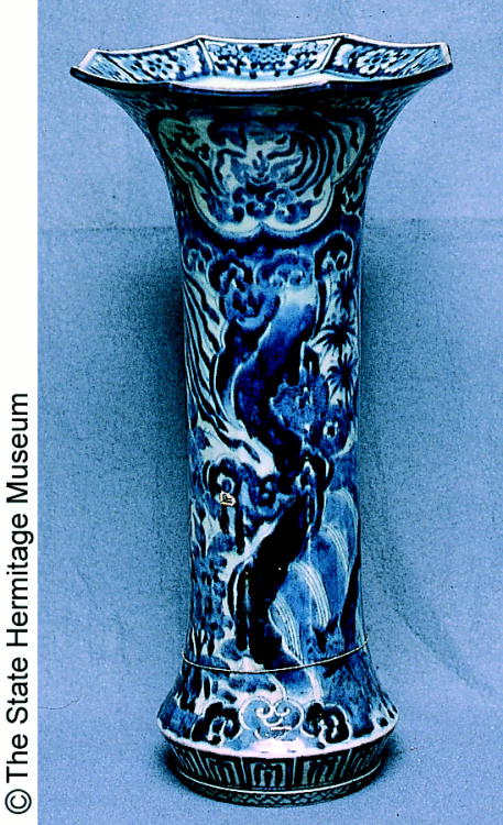 伊万里染付唐獅子鳳凰文八角瓶/ Octagonal bottle with design of Chinese lions and phoenix |