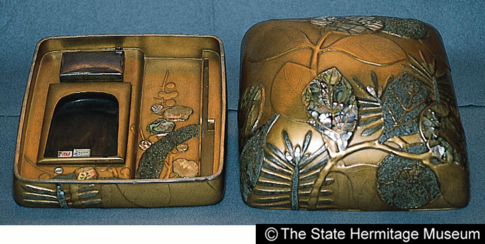 作品名 花卉若松蒔絵螺鈿料紙硯箱/ Writing utensil boxes