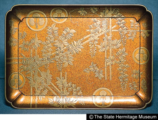 藤棚立葵紋蒔絵香盆/ Tray for incense utensils |