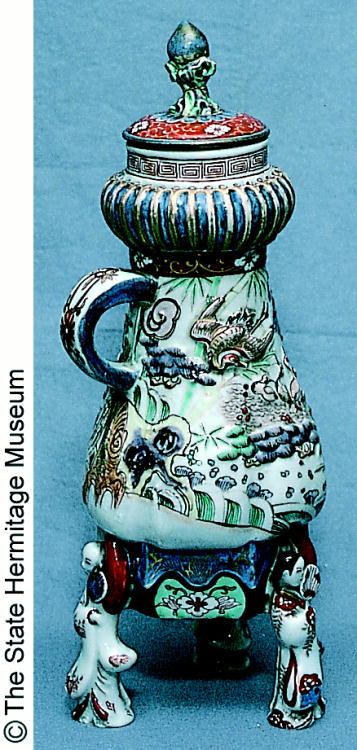 伊万里色絵花鳥文酒器/ Wine container with design of flowers and birds |
