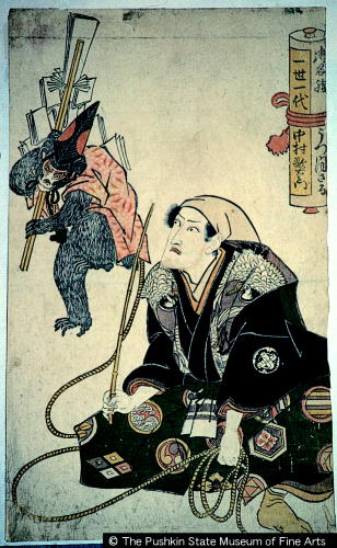 御名残一世一代中村歌右衛門 うつぼざる/ Onagori issei ichidai Nakamura Utaemon Utsubozaru |