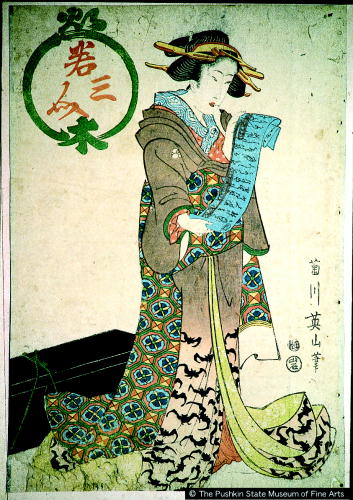 若三人 (文読む芸者)/ Waka sanjin [Geisha Reading a Letter] |