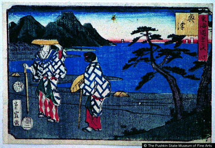 東海道五十三次 十八 奥津/ Tookaidoo gojuusan tsugi Eighteen: Okitsu |